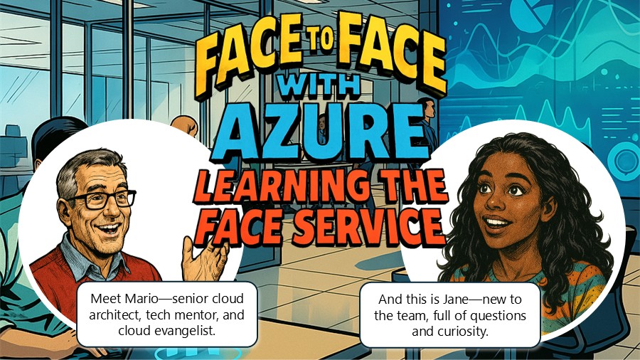In a cutting-edge tech office buzzing with innovation, junior developer Jane begins her first week on the job, filled with excitement and curiosity. She’s eager to learn the latest in AI and cloud technology, and today, she gets a one-on-one walkthrough with her mentor, Mario, a seasoned senior cloud architect. Their focus is Azure Face Service, a powerful tool that blends artificial intelligence with facial recognition. As they explore how it works, where it shines, and the responsibilities it demands, Jane begins to see how responsible AI can shape the future of digital identity and privacy.